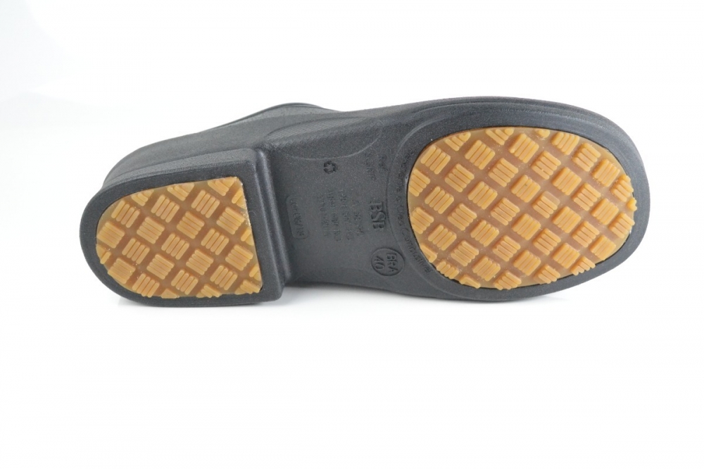 Calçado ocupacional de uso profissional, tipo sapato, impermeável, confeccionado em material polimérico, solado de borracha antiderrapante, resistente à absorção de energia e ao óleo combustível, nas cores: cabedal na cor branca e solado na cor bege; cabedal na cor preta e solado na cor bege.