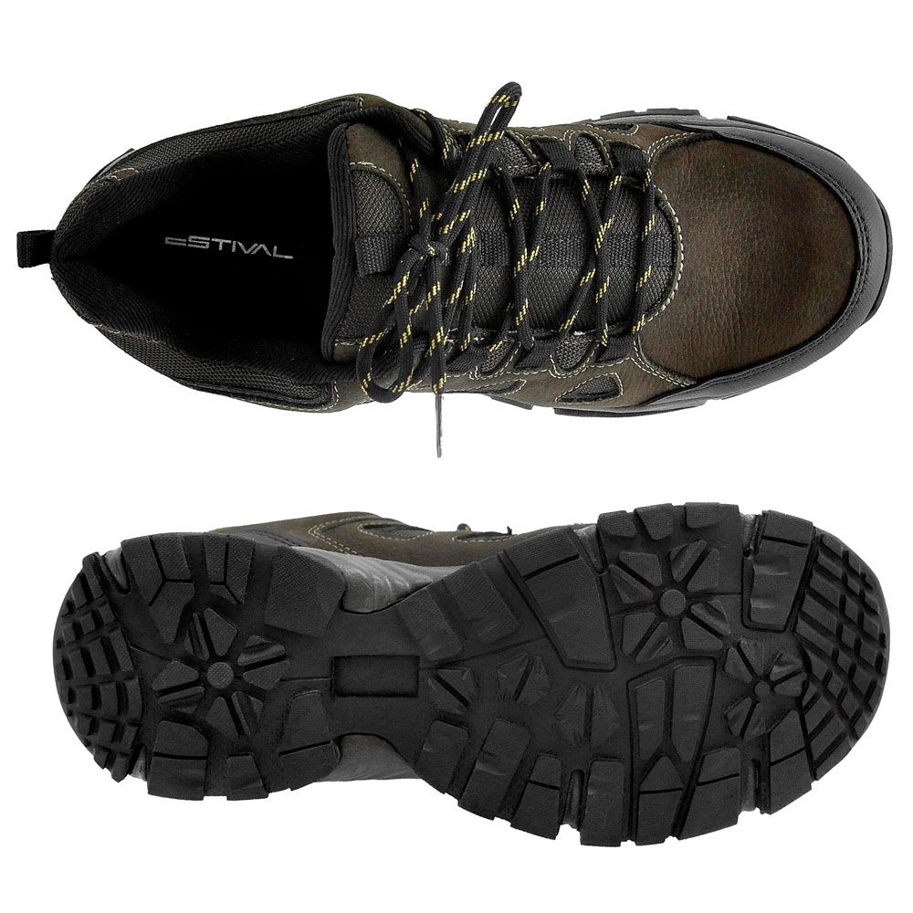 O Sapato de Segurança Estival Adventure é confeccionada em Couro Marrom com fechamento através de Cadarço na parte externa, com biqueira de material rígido na ponta do calçado evitando deformações. A parte cano composta por uma espuma espessa, serve como proteção do tornozelo e dos tendões da parte de trás do pé. A parte interna do calçado é forrado com tecido circular que proporciona uma rápida dispersão de vapor de umidade garantindo a zona de conforto. Solado de borracha com Eva resistente a óleos e graxos, canais de 3mm de profundidade que permite um rápido escoamento de água e reduz a possibilidade escorregões.